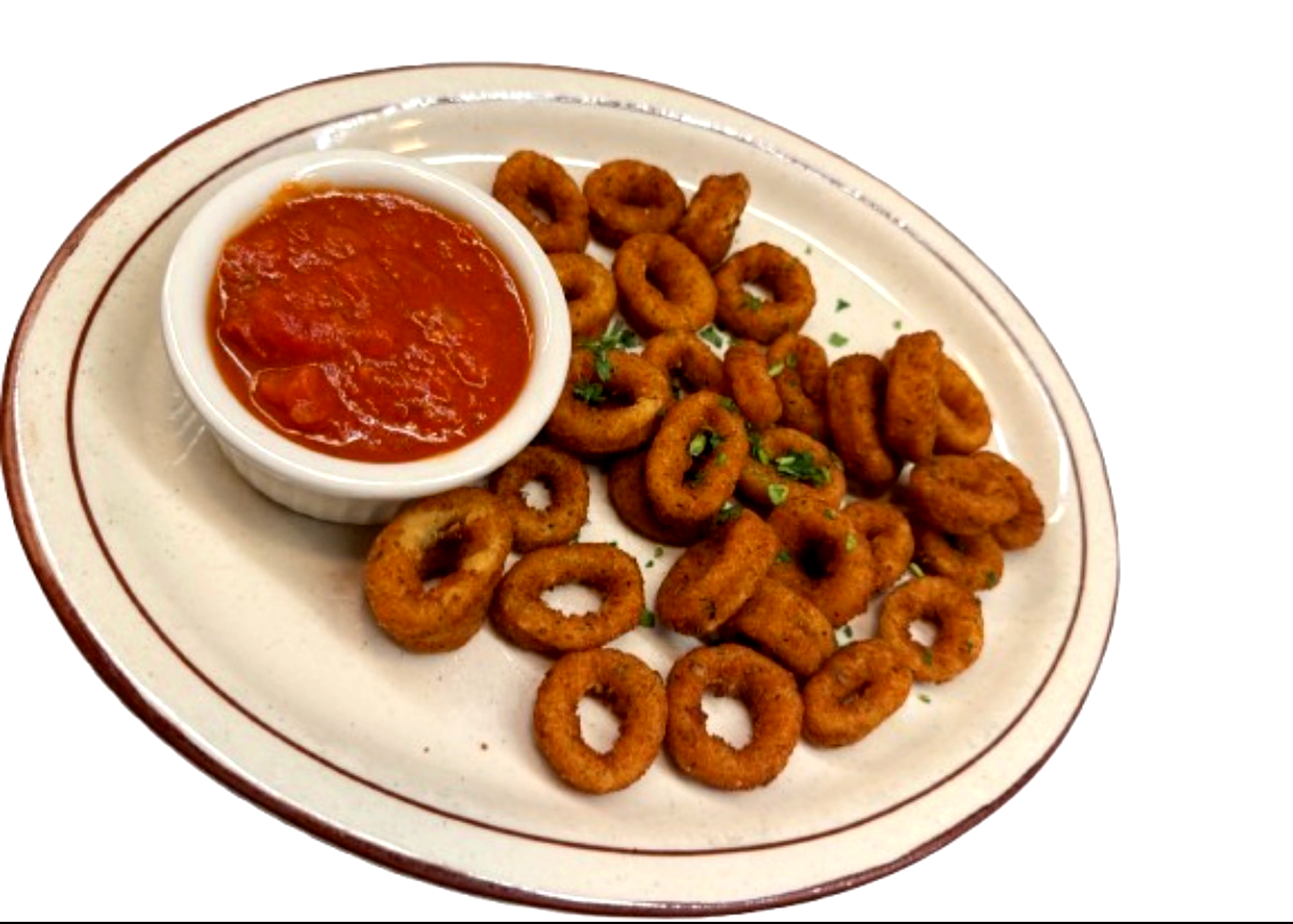 Lightly breaded fresh calamari fried and served with tomato sauce"