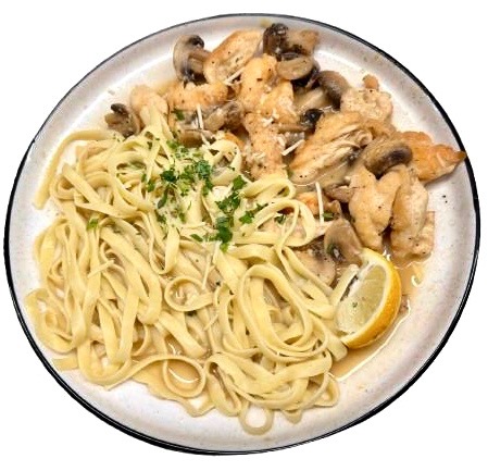 Chicken Breast Sauteed with mushroom and Marsala wine served with fettuccine pasta